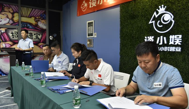 9月6日10:30,在談小娛總部樣板球房,雙方簽署了代言合同、項(xiàng)目合作協(xié)議。兩位世界冠軍不僅僅成為談小娛品牌代言人,也即將成為談小娛自助球房店主。簽約儀式完成后,舉行了簡(jiǎn)短而熱烈的員工見(jiàn)面會(huì),談小娛總部120多位員工參加。
