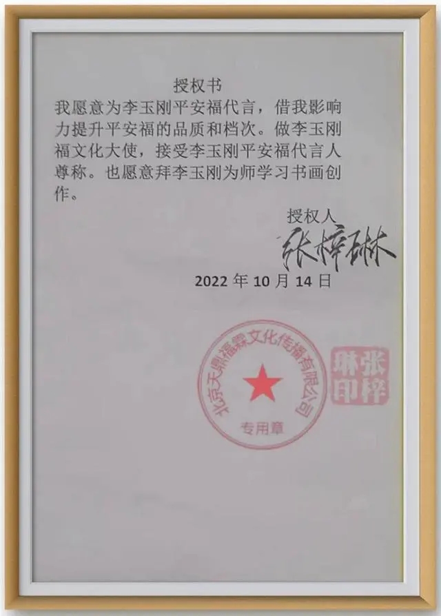10月14日,國際超模、世界小姐張梓琳(明星代言公司)正式成為李玉剛創(chuàng)作的“平安福”代言,做平安福福文化全球形象大使,并拜李玉剛教授為師,學(xué)習(xí)書畫藝術(shù)創(chuàng)作。李玉剛,中國書協(xié)香港協(xié)會副主席、山東文化產(chǎn)業(yè)職業(yè)學(xué)院特聘教授、平安福創(chuàng)始人。