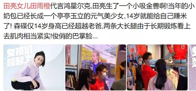 鴻星爾克的眼光真毒辣,選了奧運(yùn)冠軍田亮(明星代言公司)女兒森蝶(田雨橙)做代言人,小小年紀(jì)就坐擁幾千萬(wàn)合同,幾乎甩開(kāi)同齡人幾條街,她到底靠什么得寵的?很多人認(rèn)為她是靠田亮成功上位的,畢竟爸爸是世界冠軍,再加上自己出眾的條件,成功俘獲鴻心爾克的芳心。不過(guò)雙方都是共贏的,森蝶獲得了人氣,鴻心爾克獲得了流量,畢竟有了田亮的光環(huán),鴻心爾克才是最大的贏家。而森蝶越長(zhǎng)大越漂亮,完完全全可以勝任這個(gè)代言,感覺(jué)青春無(wú)限,估計(jì)長(zhǎng)大后又是一個(gè)大美女,如果能進(jìn)入娛樂(lè)圈,相信又是一顆閃閃發(fā)亮的星星。