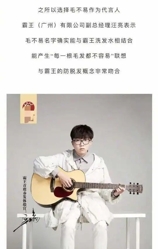 毛不易代言霸王洗發(fā)水 名字能產(chǎn)生“每一根毛發(fā)都不容易”的聯(lián)想
