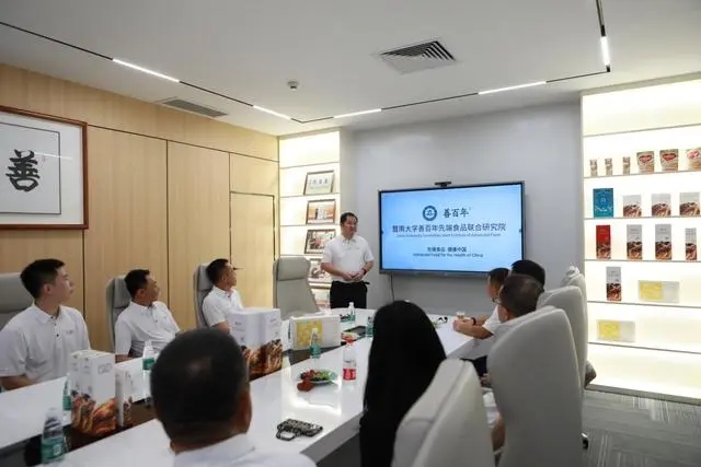 會議室內(nèi),善百年首席科學家,暨南大學理工學院副院長汪勇教授,為侯勇詳細講解二酯油。