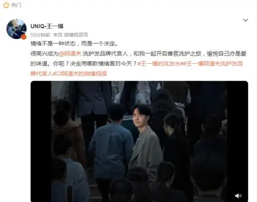 618前夕官宣新生代藝人王一博(明星代言公司)為阿道夫洗護發(fā)品牌代言人,在官方微博上聯(lián)袂發(fā)布TVC大片,傳遞“情緒不是一種狀態(tài),而是一個決定”的價值主張,愉悅自己亦是愛的味道,提出“你決定,用哪款情緒面對今天”的靈魂叩問,迅速抓取粉絲和消費者眼球。同時,派送大波福利,實力寵粉,迎來品牌發(fā)展的高光時刻。