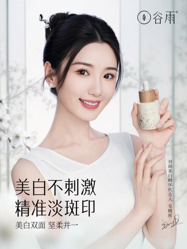 近日,谷雨官宣演員毛曉彤(明星代言公司)成為美白精華代言人,共同詮釋美白雙面,堅柔并一的產品新主張。