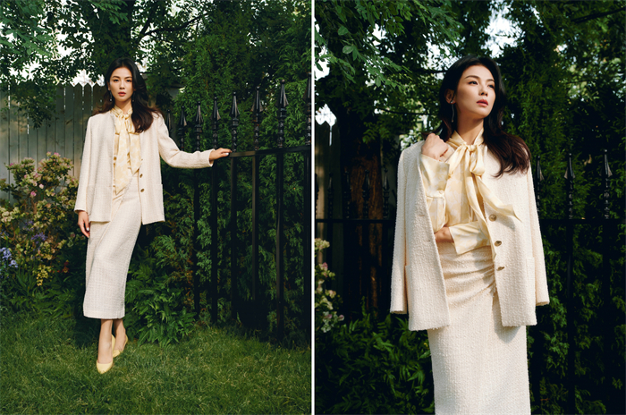 在YINER音兒2023秋冬系列的敘事中,“花園”作為「家」的私密空間外化區(qū)域,是花園主人意識層面向外展示的過渡地帶,展現了女性柔美的外在形象與堅韌的內在力量。恰如劉濤在多年的演藝事業(yè)中,塑造的眾多不同背景下的經典女性角色,以百變的形象在多重場所自由切換。生活中的劉濤自信從容,其優(yōu)雅、大氣的風度也深入人心。她游走在演繹角色與表達真我之間,傳達著多元化的著裝態(tài)度。劉濤所展現的都市女性多面魅力,與YINER音兒品牌始終探索都市女性多樣化著裝需求的理念不謀而合。