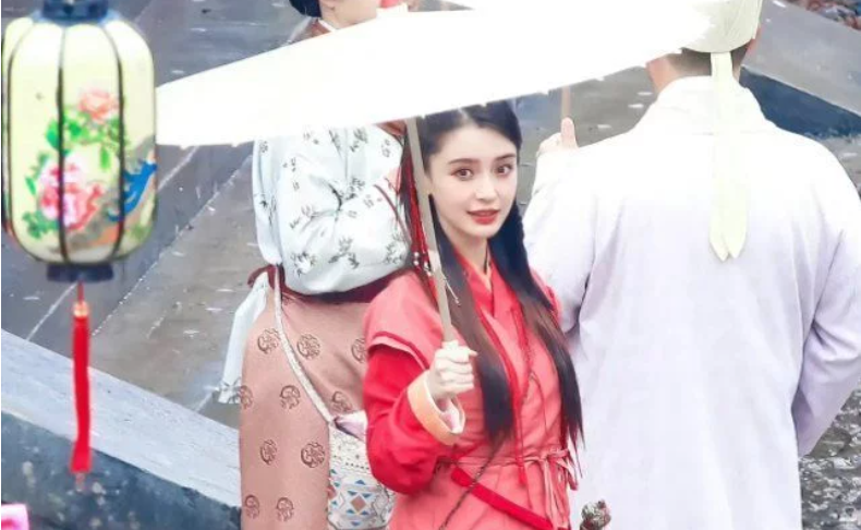 Angelababy萌探路透來襲,一襲紅色古裙cos林月如,美出圈