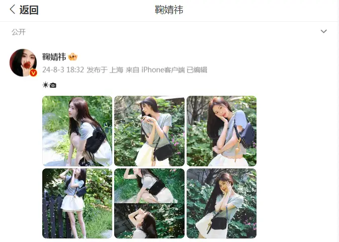 鞠婧祎曬照俏皮靈動(dòng)顯少女,秀纖細(xì)美腿惹人愛,溫柔甜美如初戀