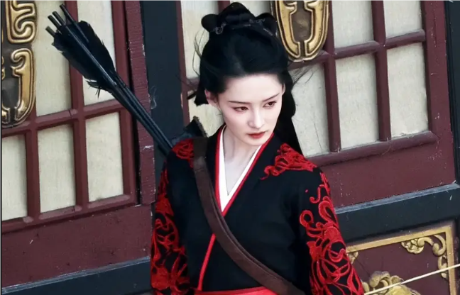 日前,李沁(明星代言費(fèi))新劇拍攝花絮曝光,照片里她穿一襲紅黑相間的古裝,扎著高馬尾,手拿弓箭,眼神凌厲。