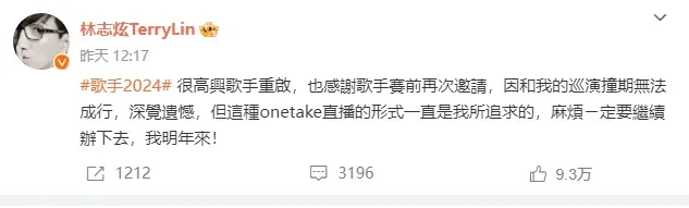 鄧紫棋林志炫回應(yīng)《歌手》搖人 稱演唱會行程有沖突