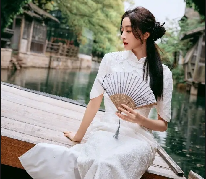 胡冰卿化身國風氣質美女 雨后游船好不愜意