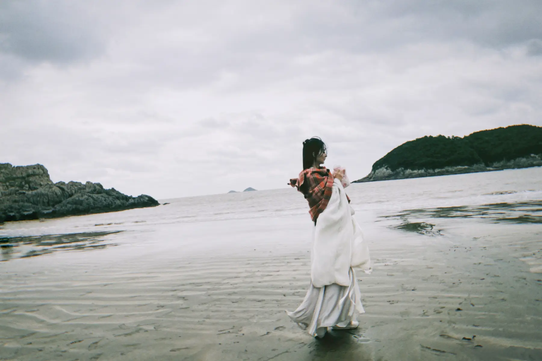 趙麗穎古裝立于沙灘上 抬頭望向天空眼神有戲