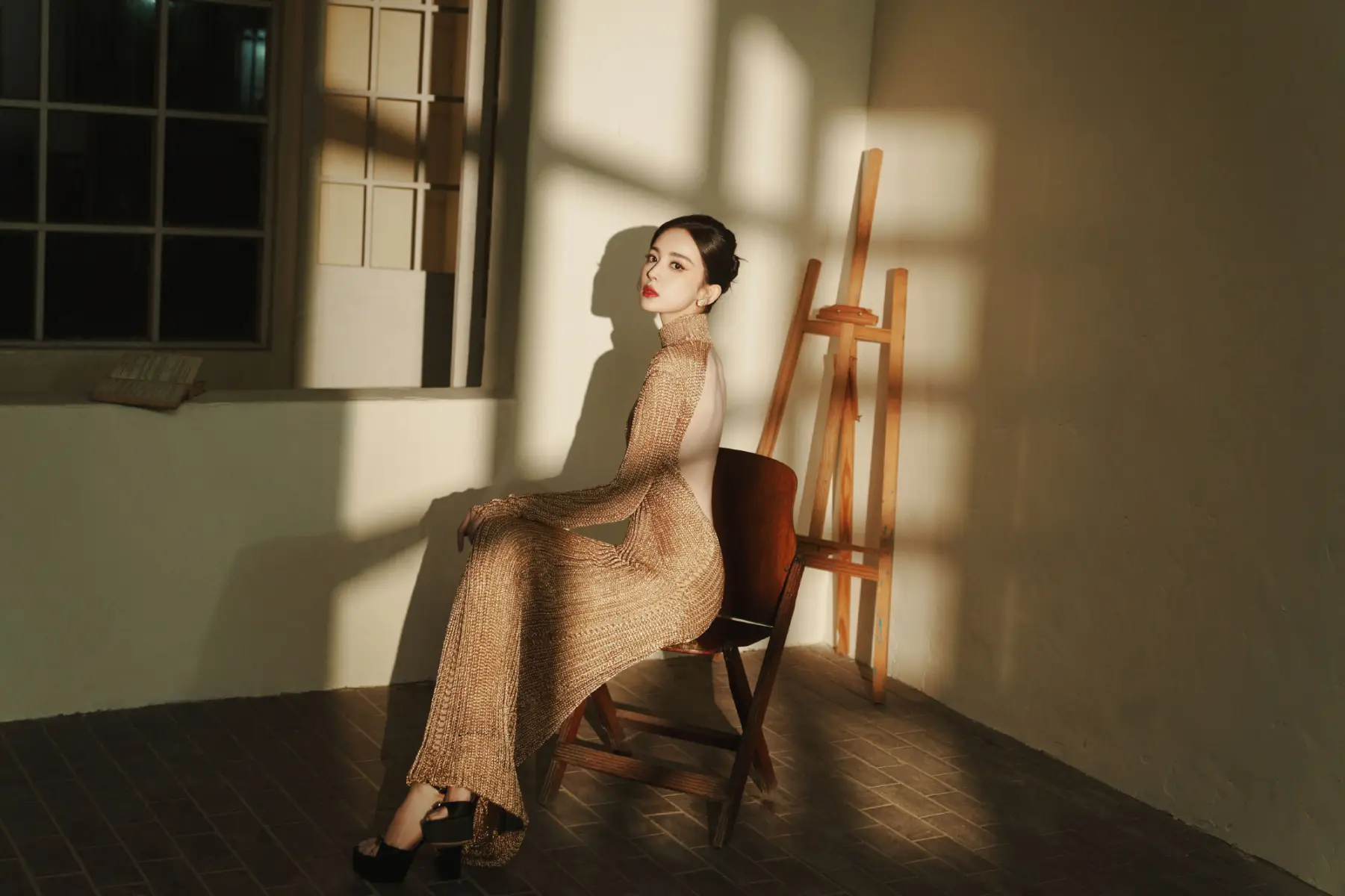 3月8日,古力娜扎(明星經(jīng)紀(jì)公司)身穿金色露背裙拍攝的一組氛圍感寫真釋出,她置身光影中,宛若迷人女神,如夢似幻,令人著迷!