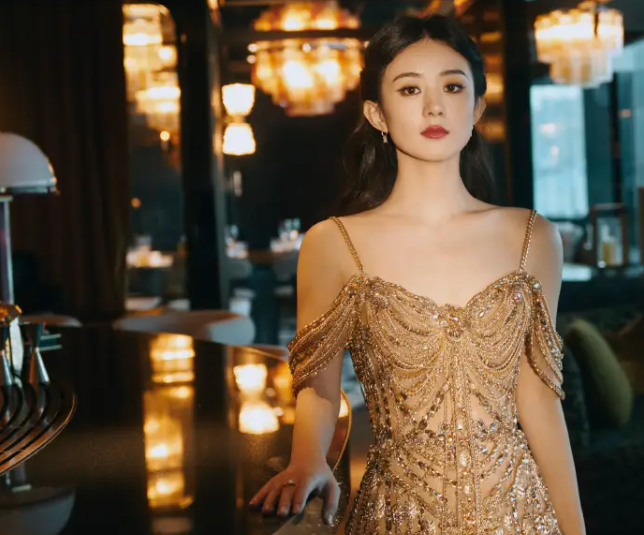 趙麗穎穿鎏金長裙璀璨華麗 波紋輝映香江浪漫