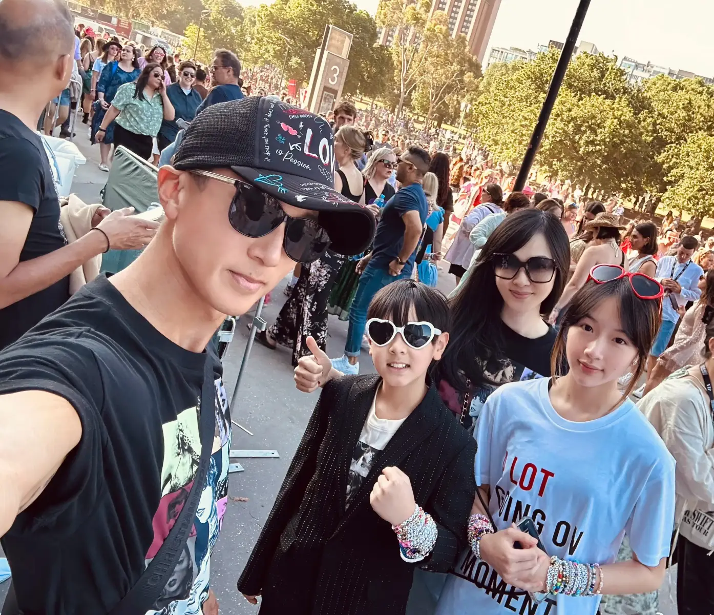2月18日,吳尊(明星經(jīng)紀(jì)公司)在社交平臺(tái)曬出全家一起看霉霉演唱會(huì)的照片,照片里一家四口站在場(chǎng)館外排隊(duì),氛圍超好。