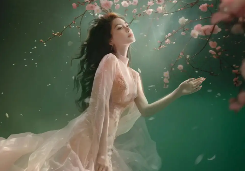 angelababy曬深海童話感寫(xiě)真 穿刺繡旗袍美若水仙