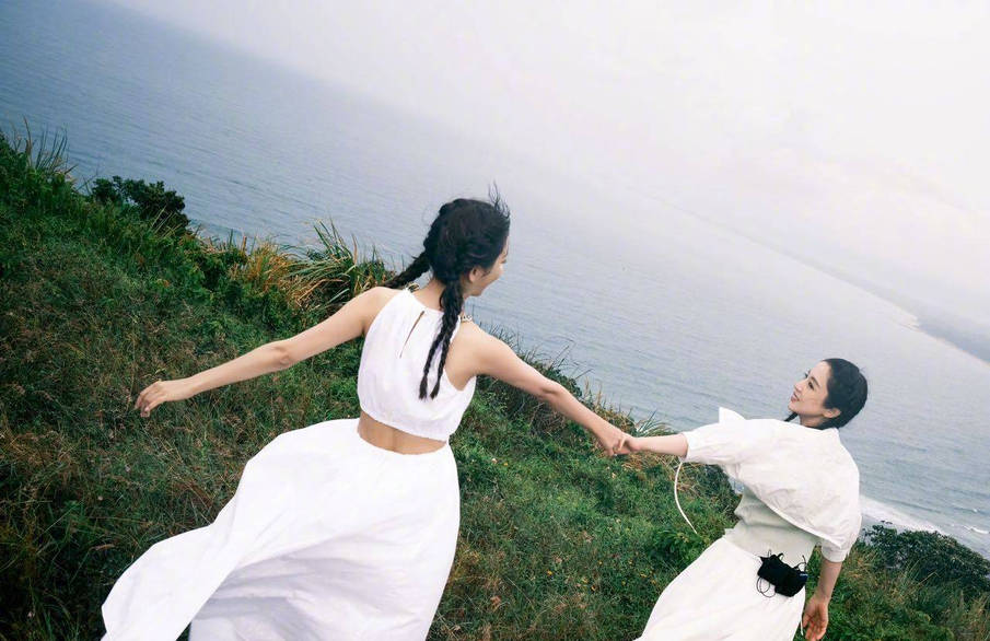佟麗婭曬與董璇旅游同框照 穿純白鏤空裙純潔恬靜