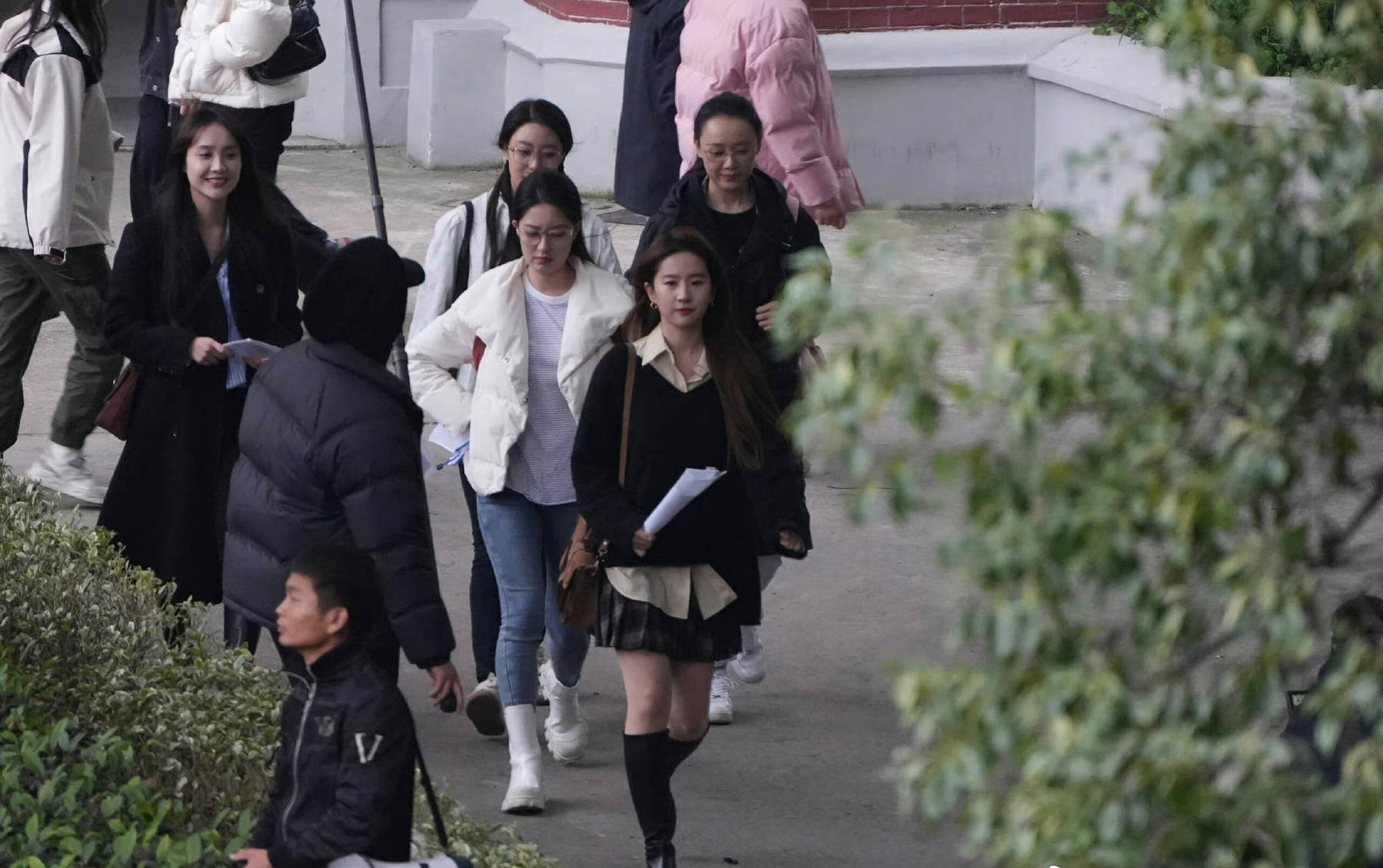 11月12日,有網(wǎng)友曬出劉亦菲在上海理工大學(xué)拍戲的路透圖,當(dāng)天,劉亦菲上身穿著V領(lǐng)針織衫,內(nèi)搭淺黃色襯衣,下身穿著開叉小短裙搭配黑色長(zhǎng)靴,青春靚麗,宛若女大學(xué)生!
