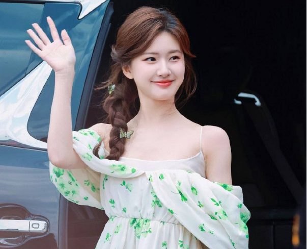 關(guān)曉彤綠裙?jié)癜l(fā)造型清爽怡人 腰肢纖細(xì)比例超好