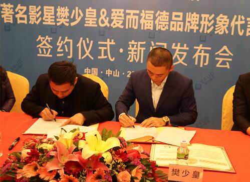 中山市愛而福德電子科技有限公司攜手功夫巨星樊少皇形象代言簽約儀式在廣東省江門市麗宮國際酒店隆重舉行,本次活動(dòng)邀約愛而福德各地區(qū)代理商代表出席,見證企業(yè)形象代言簽約,愛而福德創(chuàng)始人陳文釗與功夫巨星樊少皇首次會(huì)面交流,成功簽署品牌發(fā)展的戰(zhàn)略協(xié)議,樊少皇成為愛而福德形象代言人!