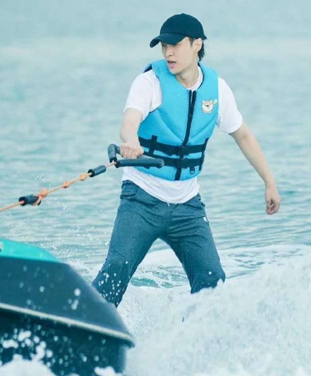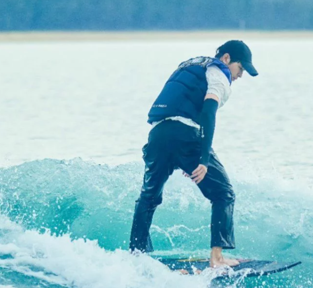 我們再來看看彭昱暢(明星經(jīng)紀公司),早在上一季他就說過想要玩沖浪,那么在這一季中導演組終于實現(xiàn)了他的愿望,在這個星期的節(jié)目中,彭彭也體驗了沖浪的快感,不過一看就是經(jīng)常玩,輕松地站在沖浪板上,而且還不用牽引繩,動作那是想的的標準帥氣,可以說是干凈利落,這大概是他們幾人中玩得最好的了。
