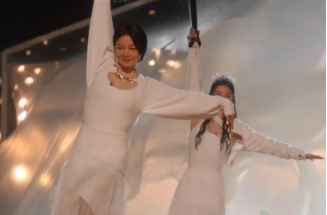 爬起來之后黃奕一下子就慌亂了,只見她抓了一下自己的頭發(fā)像是在懊惱自己的失誤,由于編排的舞蹈動(dòng)作是利用威亞來完成,所以她只能尷尬地呆在原地等待威亞的下降。