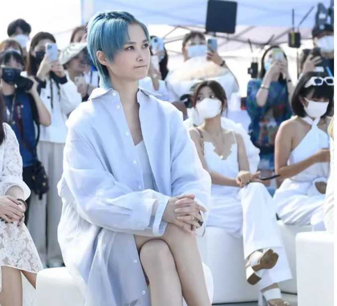值得注意的是,李宇春將短發(fā)染成了淺藍色,頭頂還扎了一個小辮子,看上去十分搶眼。