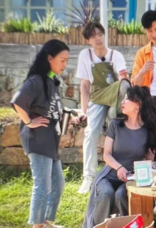 照片中,那英身穿灰色短袖下搭牛仔褲,雙手叉腰站在一旁,神情嚴肅,正與殷桃說著什么。站在烈日下的那英臉蛋已經(jīng)被曬得通紅,緊皺著眉頭,一副心情不佳的樣子。