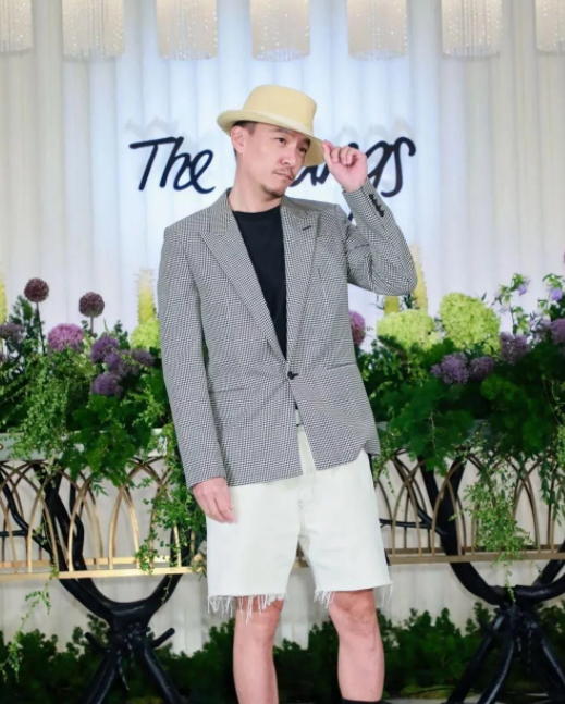 張震這一身才真的是來度假的,真的有草帽和短褲,但這身極其的怪異,西裝配短褲,真的不夠酷,拉絲短褲看起來像是穿不到第二回就會拉絲成褲衩的樣子,還有張震的黑色長筒襪,看起來真的太奇怪了。