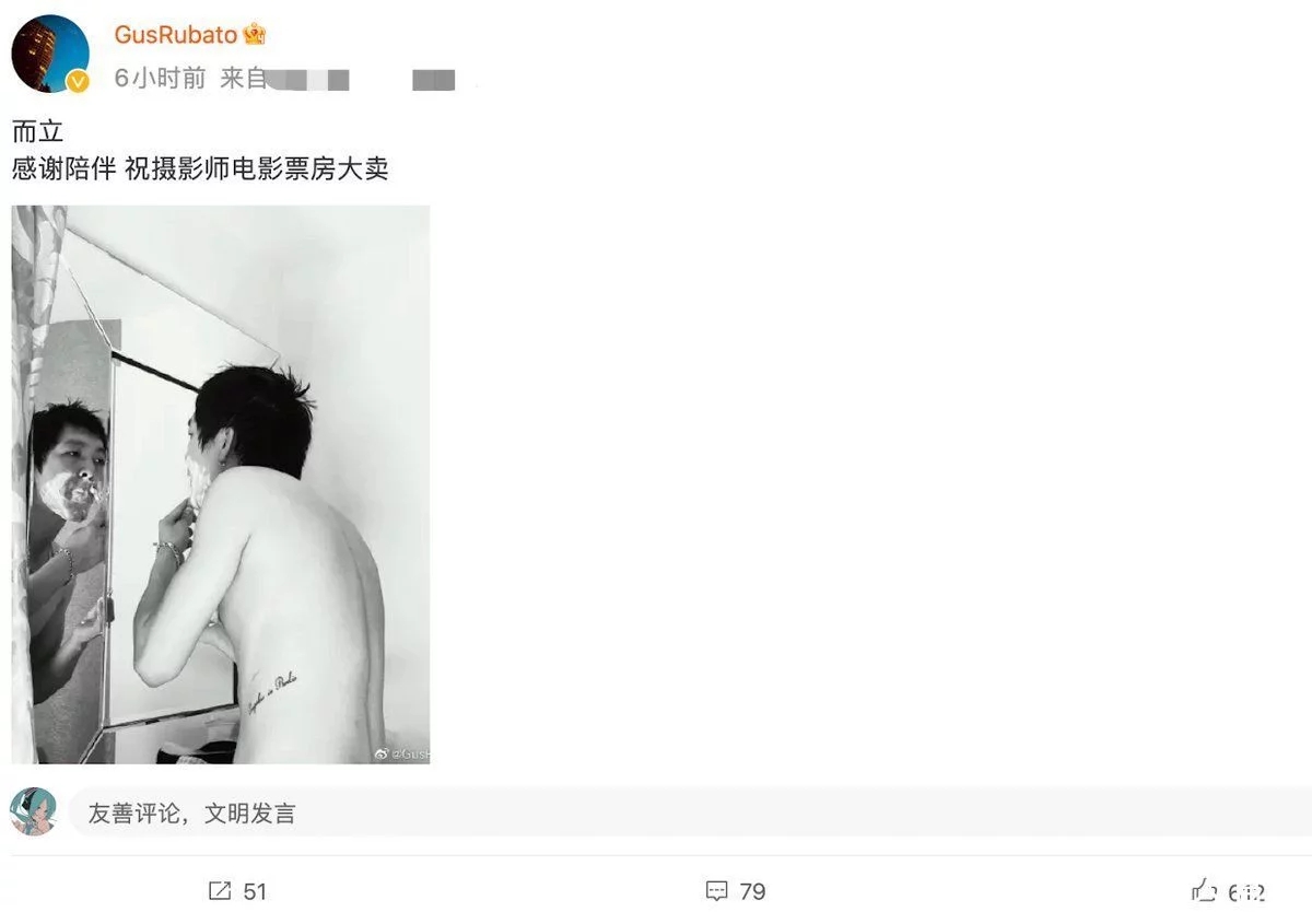 近日,張哲軒曬出馬思純鏡頭下的他,并發(fā)文為自己慶生,“而立,感謝陪伴,祝攝影師電影票房大賣”。 照片中張哲軒沒有穿上衣,正對著鏡子刮胡子,這個視角一看就是馬思純為他拍攝的,透露出滿滿的生活氣息。