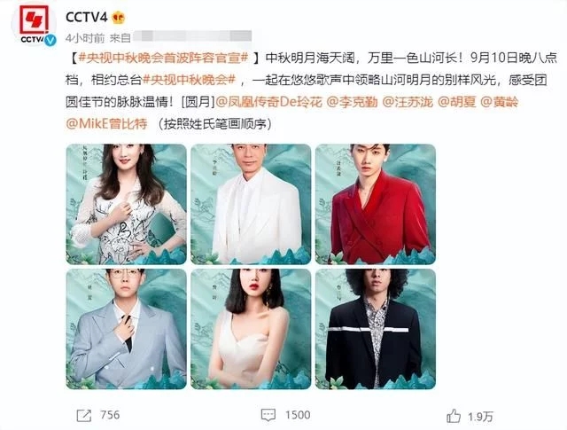 央視中秋晚會(huì)嘉賓官宣,曾毅缺席玲花搭檔汪蘇瀧,那英李克勤齊聚