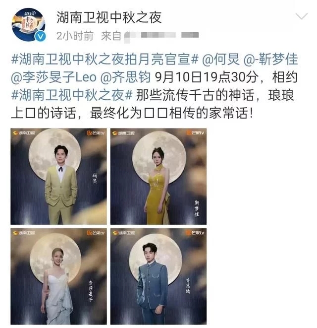 湖南臺(tái)中秋晚會(huì)官宣主持陣容,何炅挑大梁未見維嘉謝娜