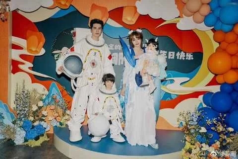 主題派對簡而言之,就是姜潮和三歲的兒子姜丹尼爾扮作宇航員,乘著航天飛船,去天上尋找麥迪娜扮作的嫦娥,而女兒艾米麗則扮演嫦娥身邊的可愛萌寵玉兔。