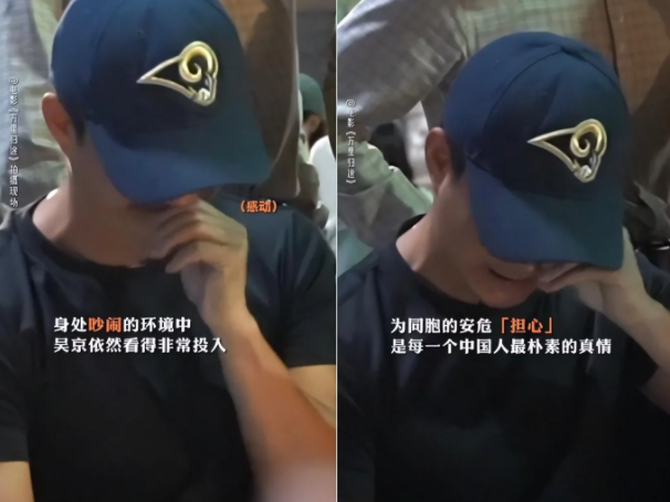 吳京片場(chǎng)探班張譯太擔(dān)心!看片段動(dòng)情低頭落淚,坐一旁默默擦眼淚