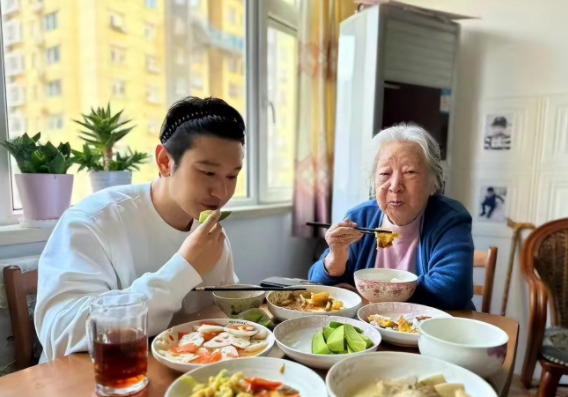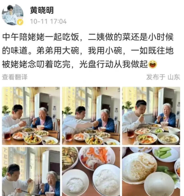 黃曉明回老家后放飛自我!和姥姥吃飯好幸福,穿T恤戴發(fā)卡太年輕
