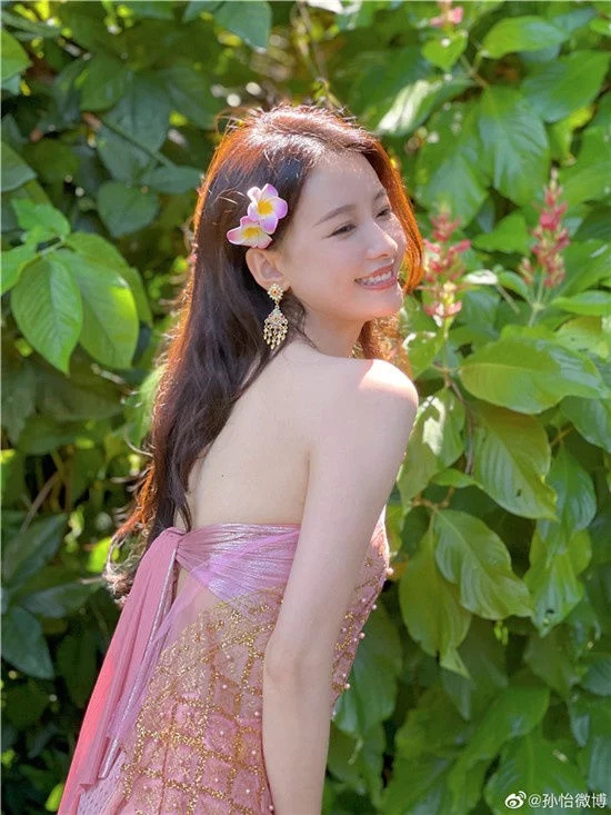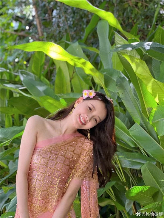 孫怡曬西雙版納游玩照 穿傣族服飾露香肩皮膚白皙