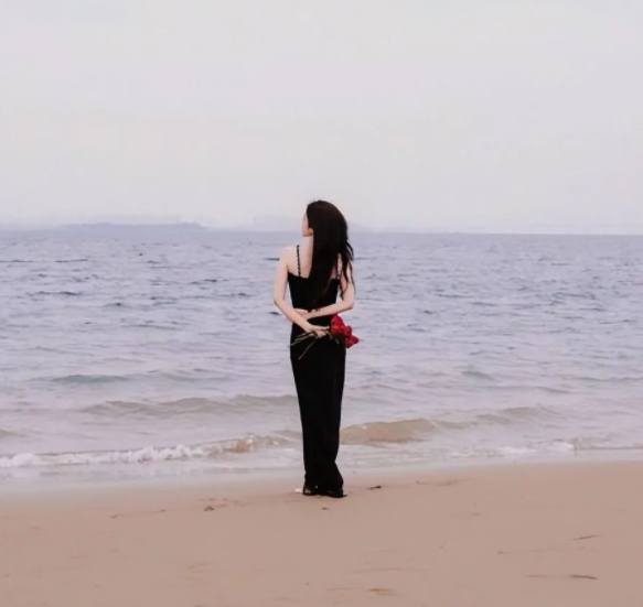照片中,白鹿身穿露肩黑色吊帶長(zhǎng)裙,露出完美的直角肩,幾枝玫瑰握于手中,她一個(gè)人站在遼闊的海邊,微側(cè)著頭,海風(fēng)吹拂過她的臉龐,帶起了海藻般的烏發(fā),紅黑色的碰撞更襯得肌膚白如雪,衣角若隱若現(xiàn)的羽毛蕾絲透著性感,這一刻玫瑰也黯然失色,垂下了高貴的花衣。