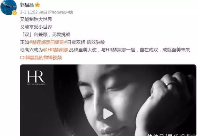 跳水女王郭晶晶通過(guò)社交平臺(tái)發(fā)布一則美妝品牌的代言視頻,隨后官方也轉(zhuǎn)發(fā)了這條動(dòng)態(tài),官宣郭晶晶為“品牌至美大使”。