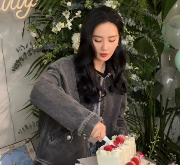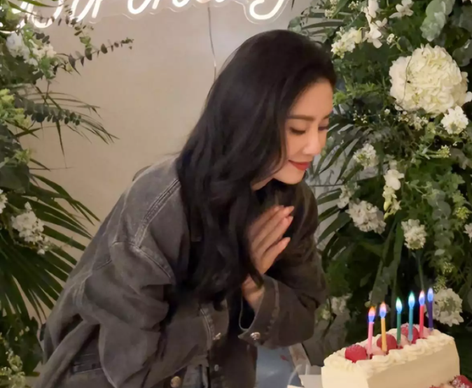 除此之外還有一組花絮照,花絮照上的她穿寬松夾克,低頭切著蛋糕,并對蛋糕許愿。