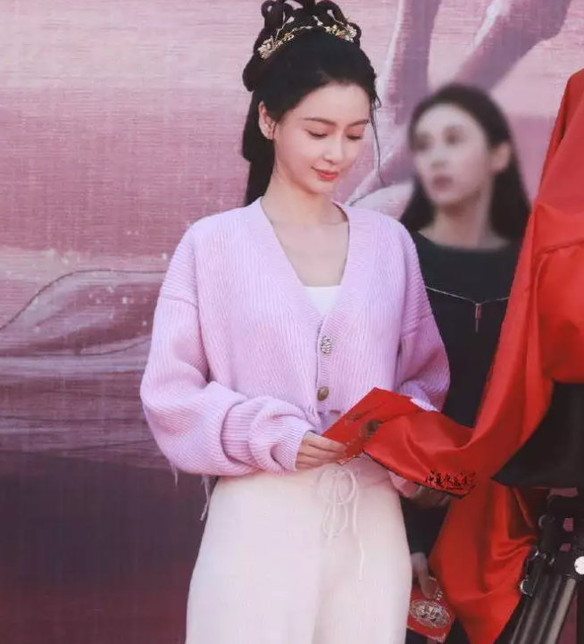 當(dāng)天,只見angelababy身穿紫色深V毛衫,內(nèi)搭白色背心,下身搭配一件白色長褲,尤其是她的妝發(fā),當(dāng)時就是按照劇中來弄的,一頭古裝發(fā)型,整個人顯得格外優(yōu)雅,很是漂亮,而且也展現(xiàn)了她超好的身材比例,讓人著迷,她低頭看向手中的紅包時,更是表現(xiàn)出一種嬌羞的韻味,很是好看,而且古裝造型加上現(xiàn)代服飾讓她也是別有一番風(fēng)味。