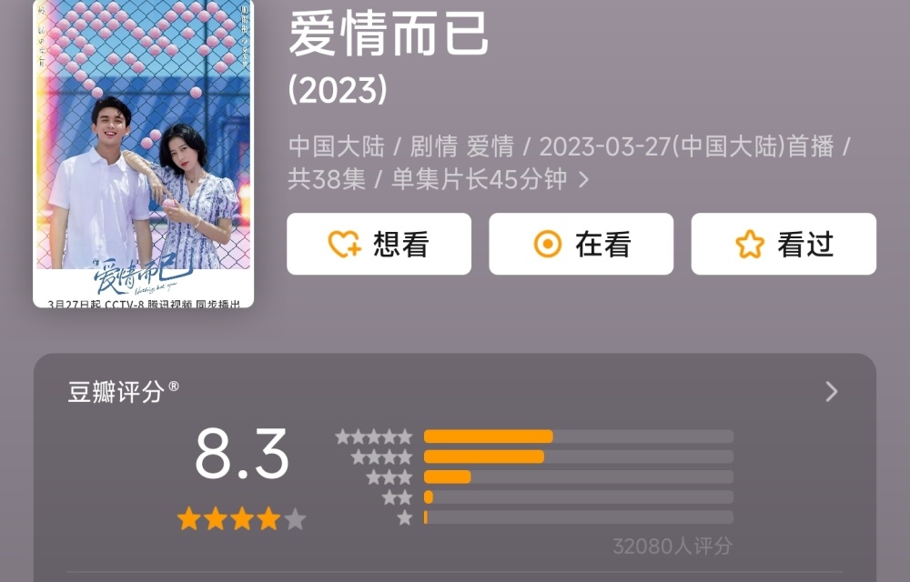 《愛情而已》收官,豆瓣評分8.3,2023國產(chǎn)愛情劇出新“王者”了