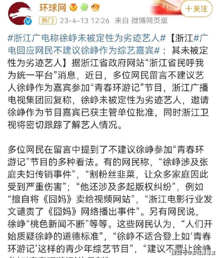 徐崢以“常駐嘉賓”的身份,參加了浙江衛(wèi)視真人秀《青春環(huán)游記4》,但是他只錄了幾期就退出了。為什么退出呢?有兩個原因:第一是因為有觀眾舉報徐崢,說他是劣跡藝人,希望《青春環(huán)游記》節(jié)目組可以辭退他。4月13日,浙江衛(wèi)視發(fā)聲明表示:徐崢沒有被定性為劣跡藝人,邀請他之前,已經(jīng)向主管單位申請過了,得到了批準(zhǔn)。