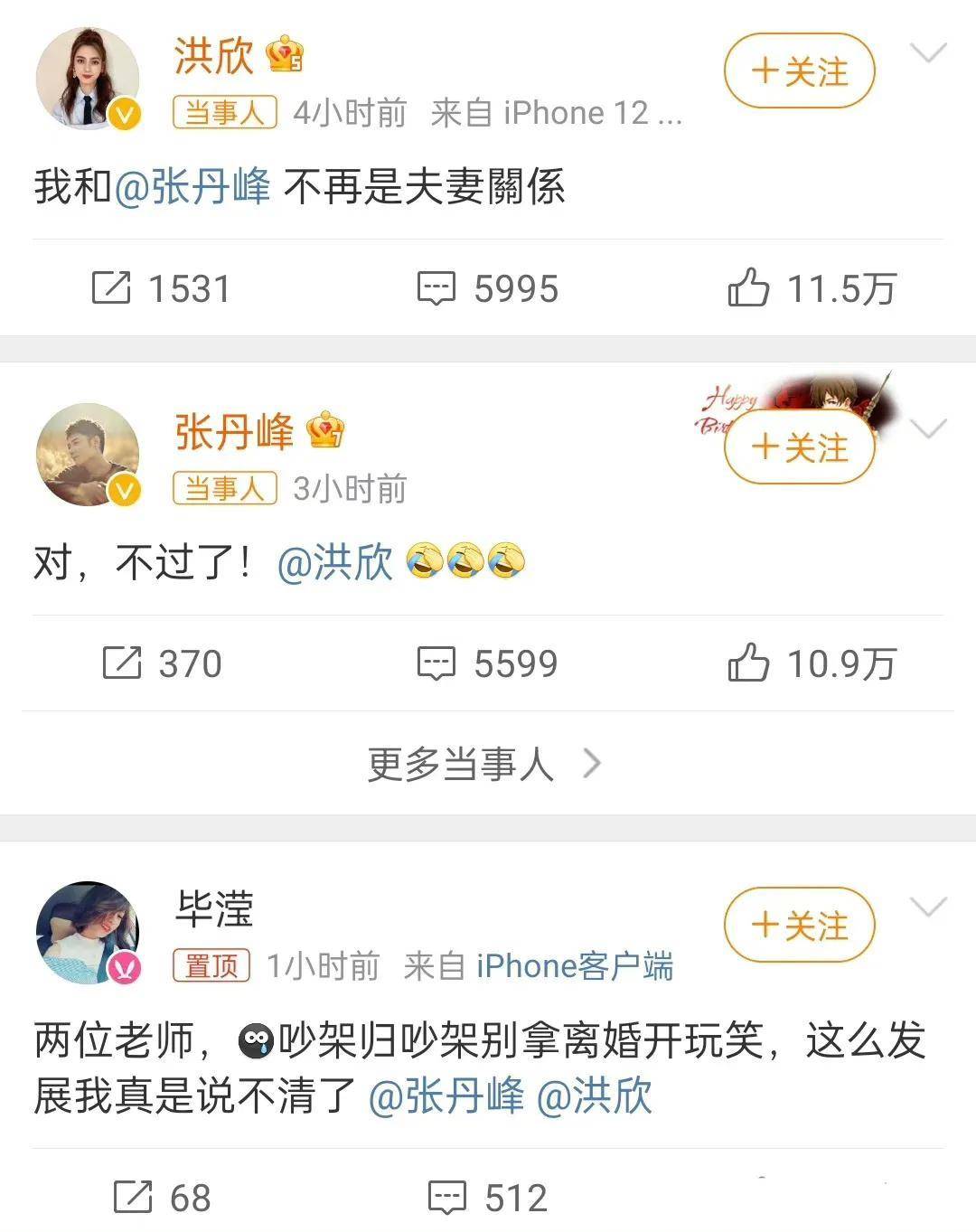 5月1日凌晨,洪欣(明星經(jīng)紀(jì)公司)和張丹峰在不少網(wǎng)友們還沉浸在假日的樂趣時,忽然扔出了一個重磅炸彈——在微博官宣離婚。
