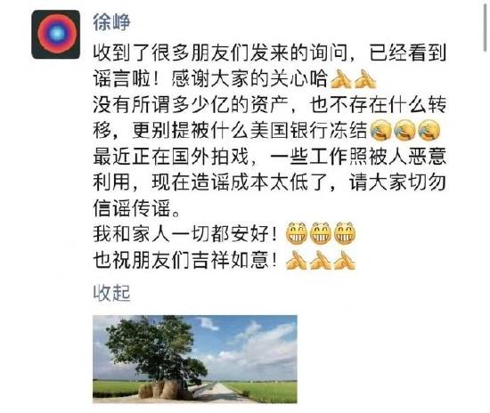 徐崢回應(yīng)轉(zhuǎn)移上億資產(chǎn)被凍結(jié)傳聞:一些工作照被人惡意利用