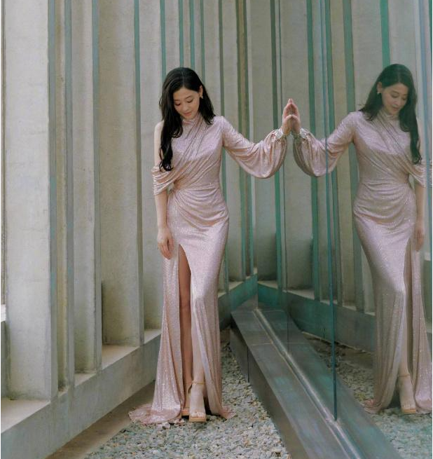 梅婷穿高開叉禮服秀少女身材,好性感