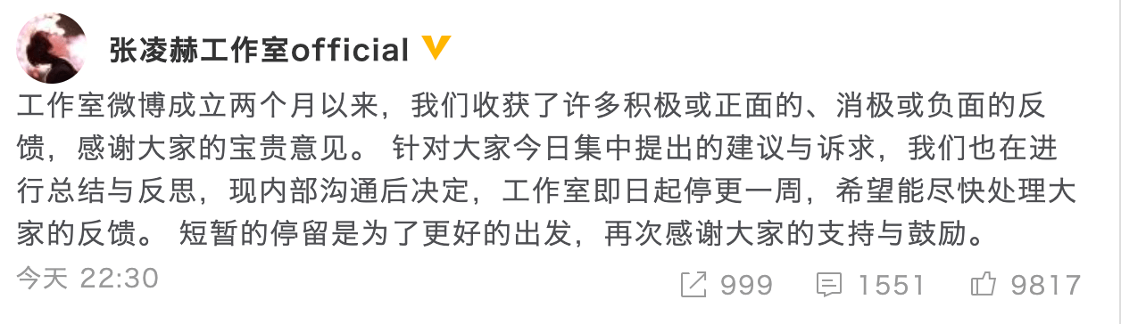 張凌赫工作室逐一回應(yīng)粉絲訴求:感謝寶貴意見(jiàn)