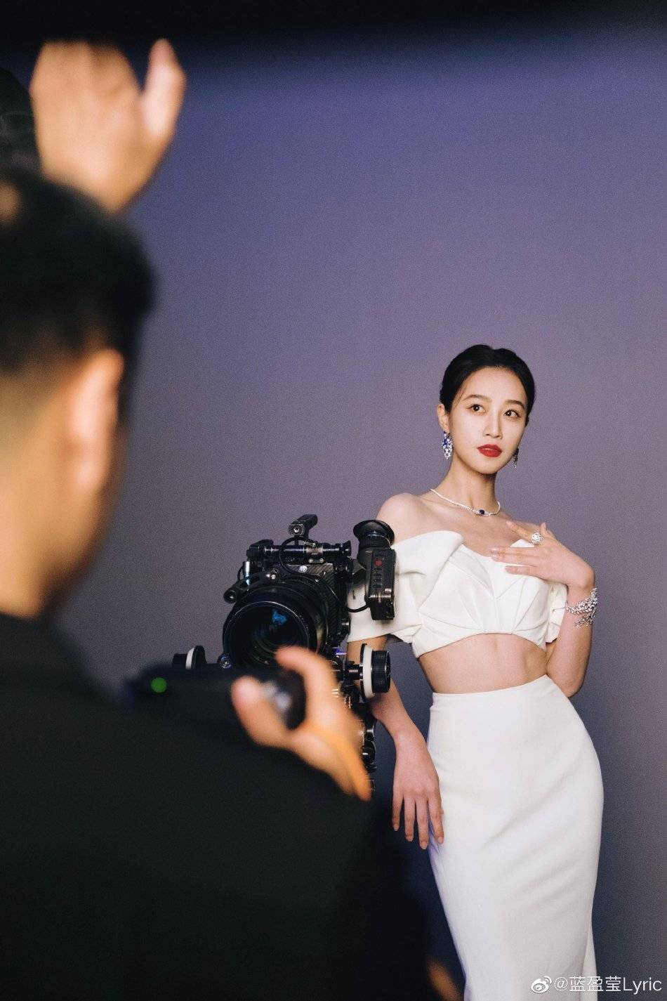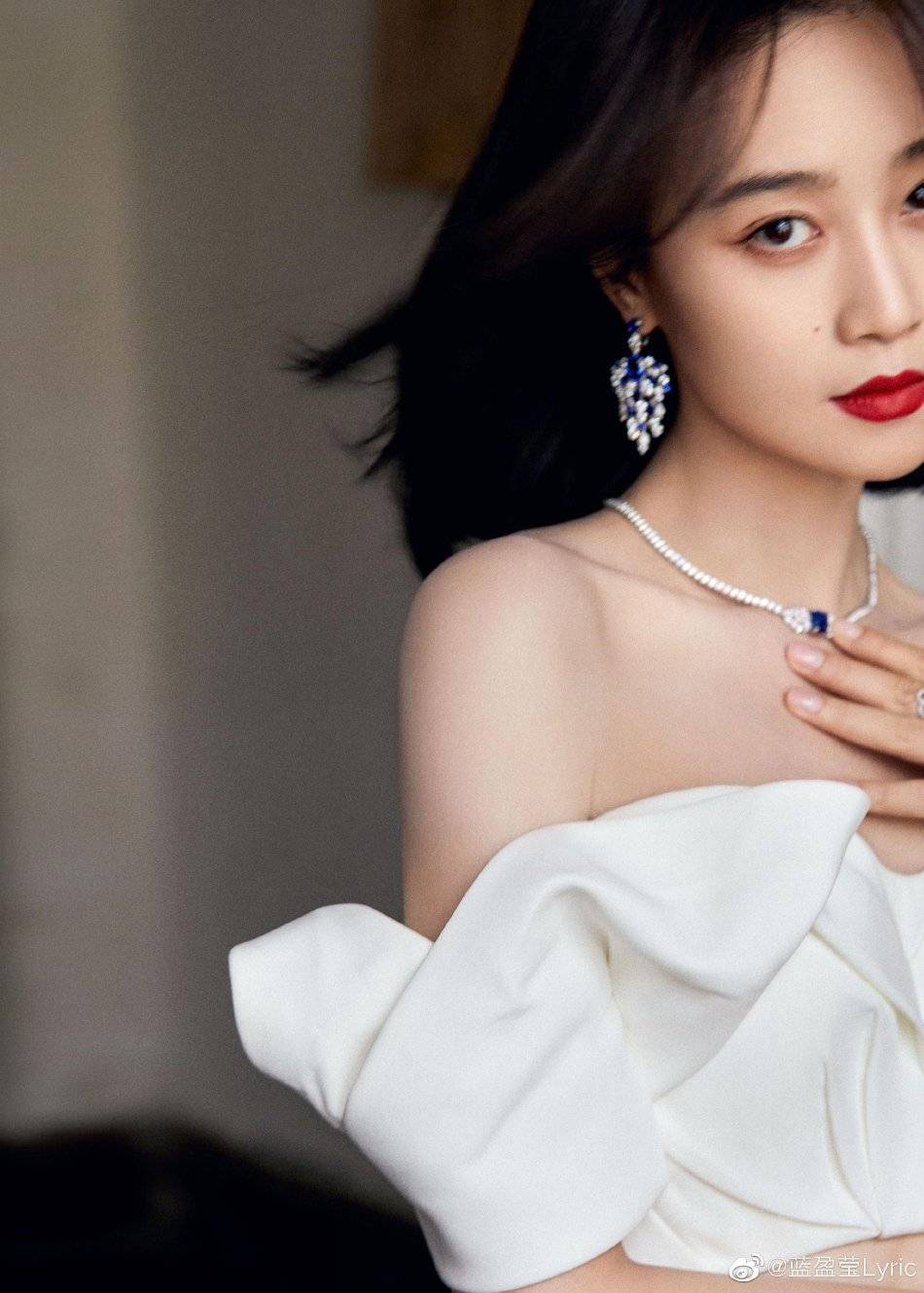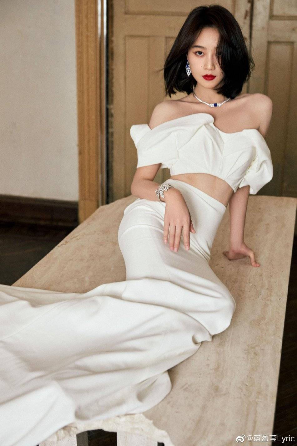 藍盈瑩穿白色露腰長裙,她俏臉成熟嫵媚,脖子和手上都戴著名貴首飾,加上她肌膚白到發(fā)光,真是太美了!