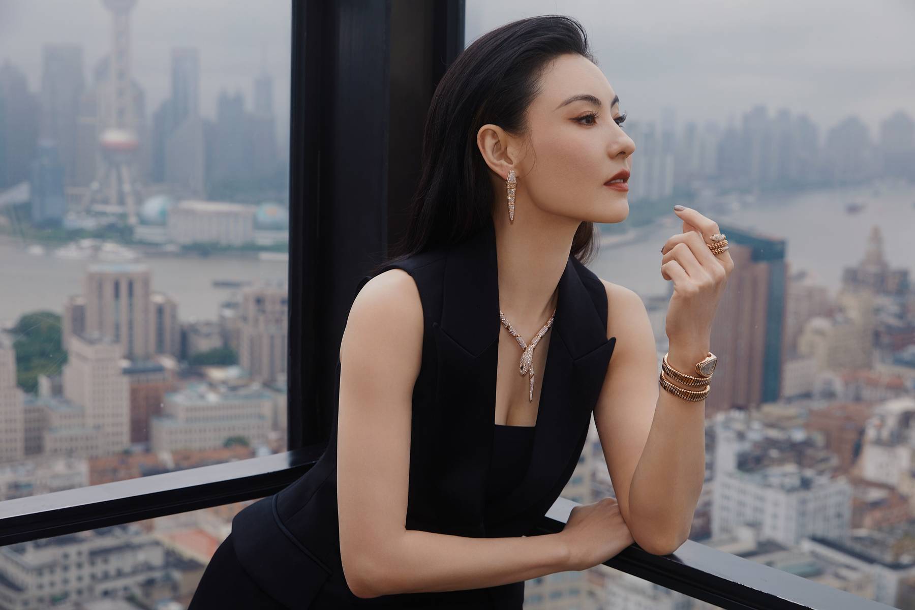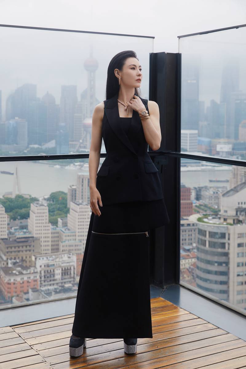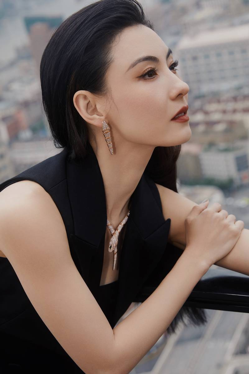 張柏芝搭配閃耀珠寶飾品,靈動自然。