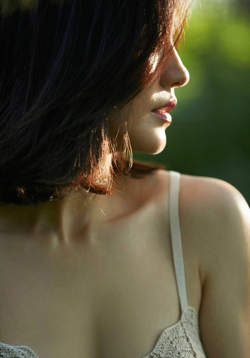 組圖王智穿吊帶鏤空裙秀豐腴身姿 綠意盎然悠閑愜意
