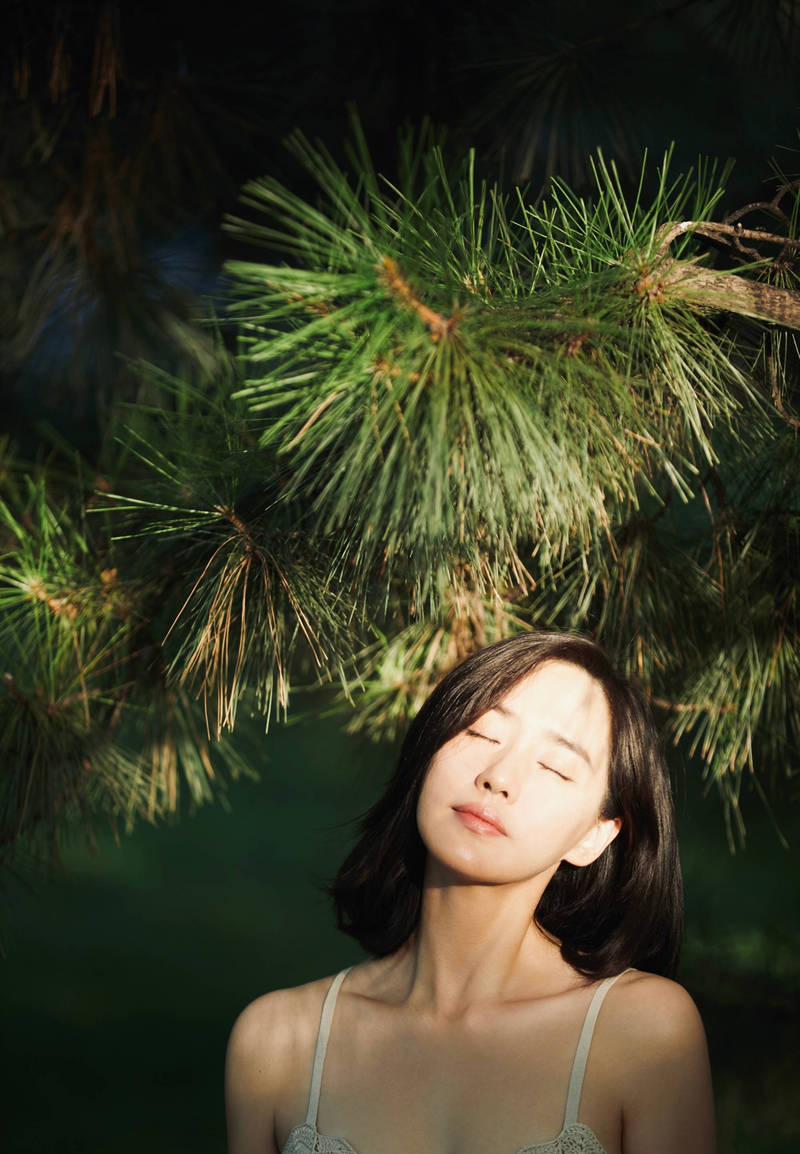 王智閉上眼睛,享受綠意盎然,悠閑愜意。
