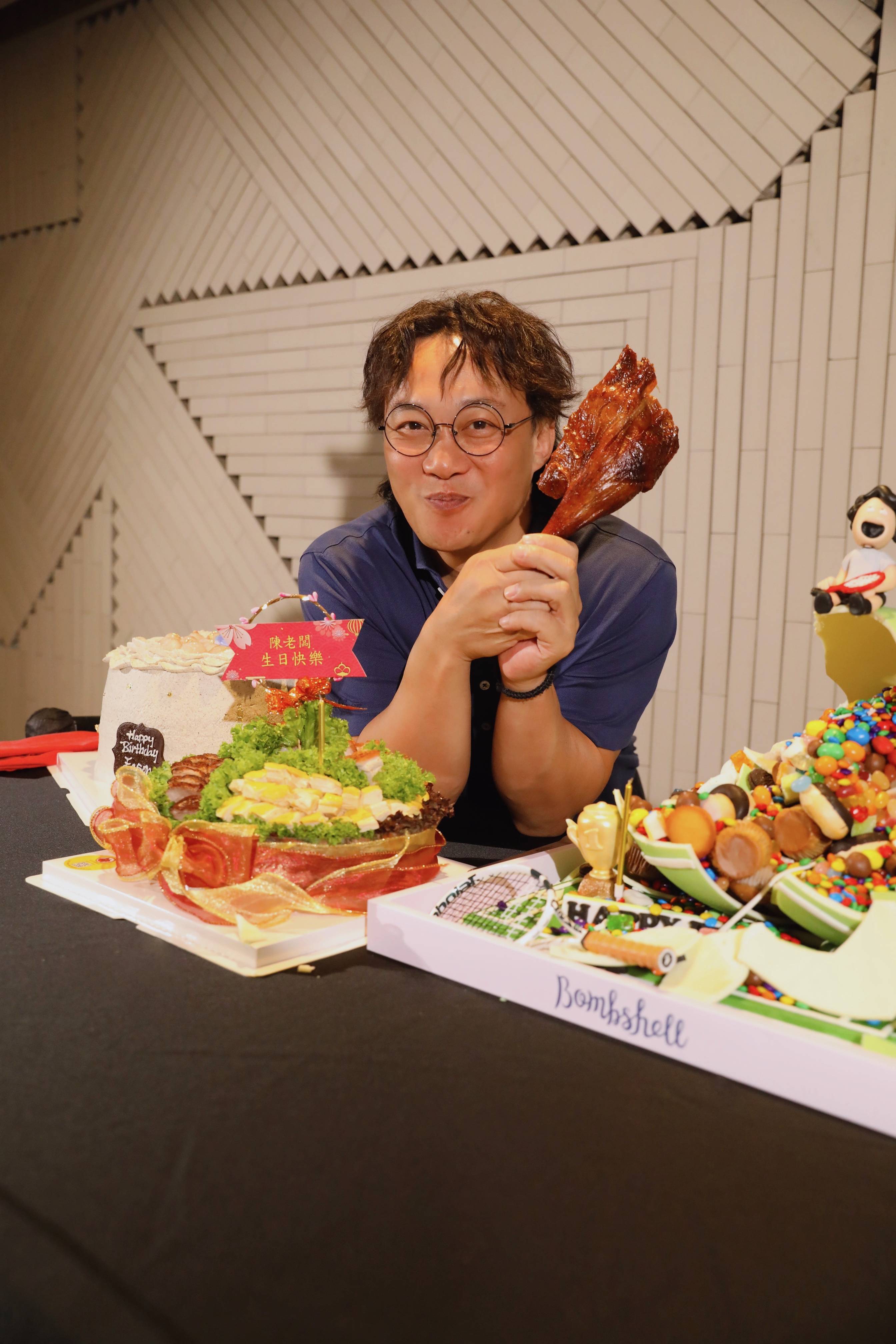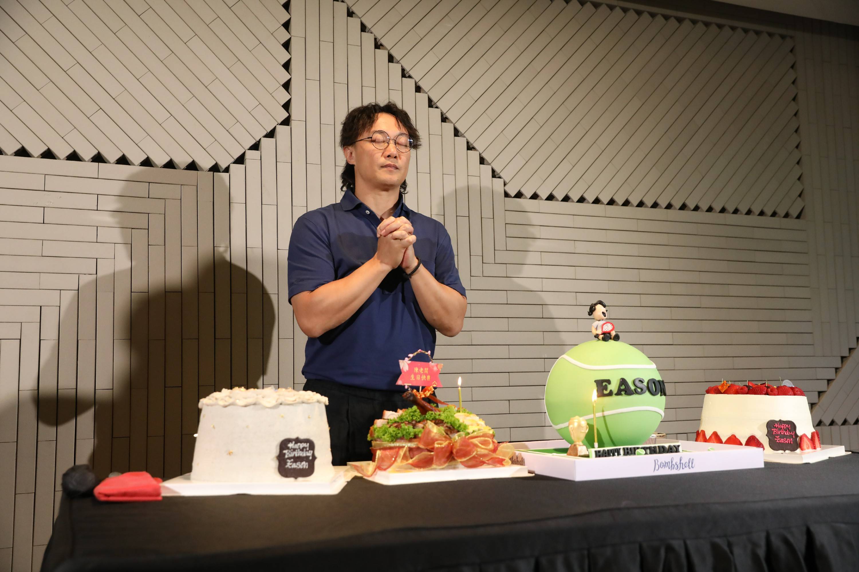 原本7月27日過生日,但Eason昨天提早跟歌迷一起慶生,還切了四款不同的蛋糕,兩款是他最喜愛的味道,另外一個(gè)是他最喜愛的網(wǎng)球撲撲蛋糕,還有一個(gè)是由各種他喜愛的燒味砌成的中式叉燒油雞燒鵝脾蔥油飯蛋糕,創(chuàng)意十足,開心得Eason自己也拿出電話不停給蛋糕拍照,吹蠟燭許愿后,他更第一時(shí)間把燒鵝脾拉出來即食。至于生日愿望,他笑謂:“講出來就唔靈啦,但其實(shí)人愈大他自認(rèn)追求愈少,最希望都是身體健康,同之后巡回演出順順利利,如果可以再貪心,老土D就希望世界可以和平健康,沒有戰(zhàn)爭與疾病。”