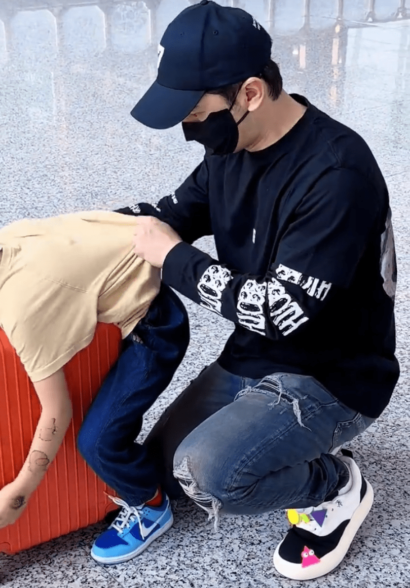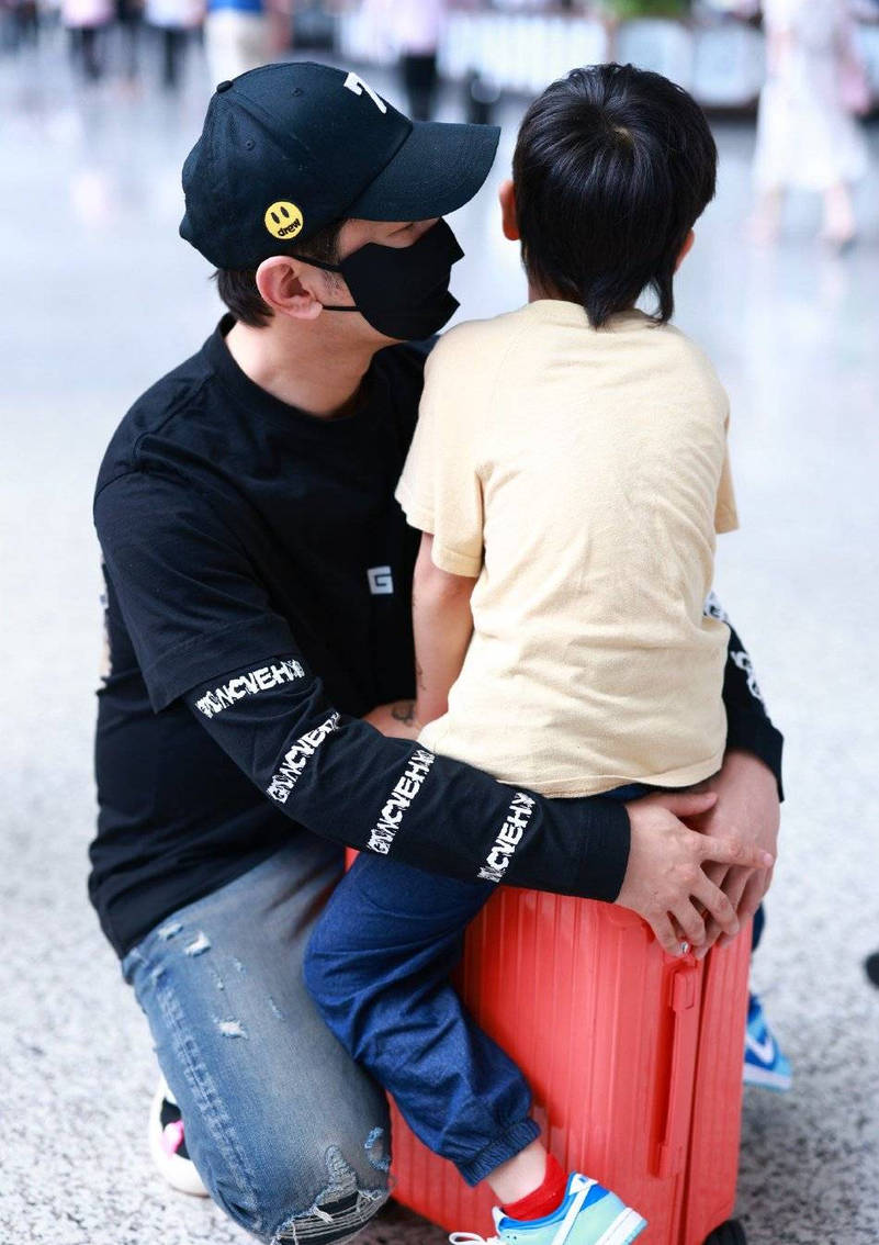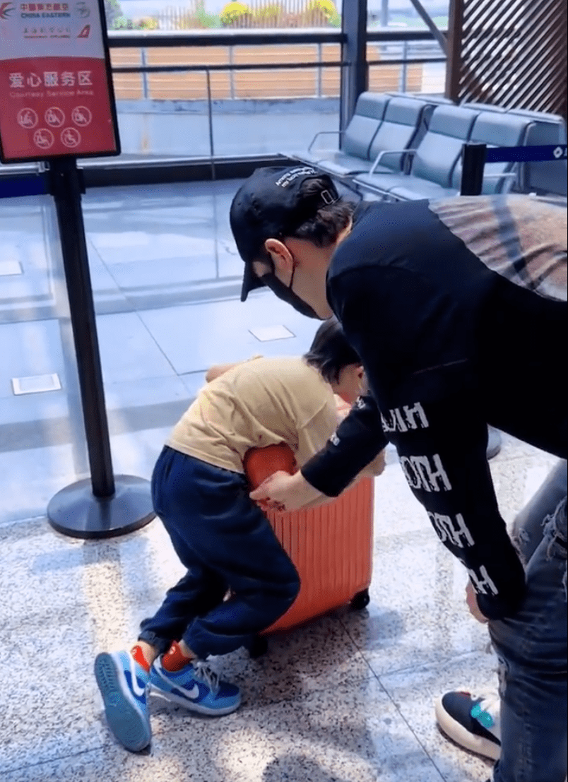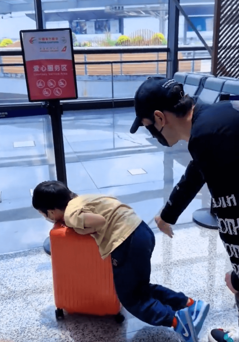 黃曉明帶著兒子現(xiàn)身機(jī)場 小海綿玩轉(zhuǎn)行李箱超可愛